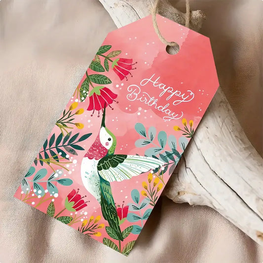 Floral Happy Birthday Hummingbird Gift Tag (Pack of 8)