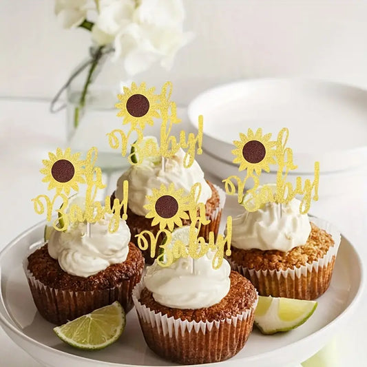 Oh Baby Sunflower Cupcake Toppers For Baby Shower (Pack of 12)