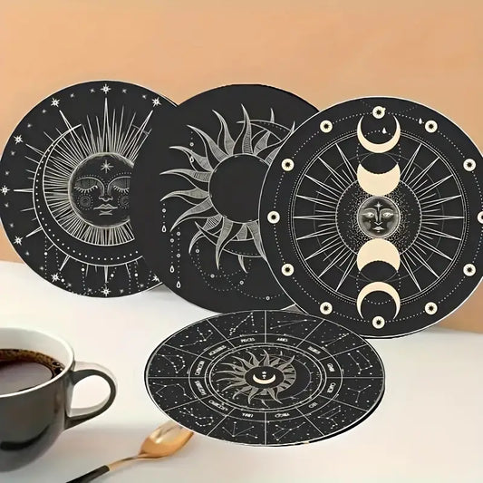 Pack of 6 Minimalist Wooden Sun & Mood Astrology Coasters