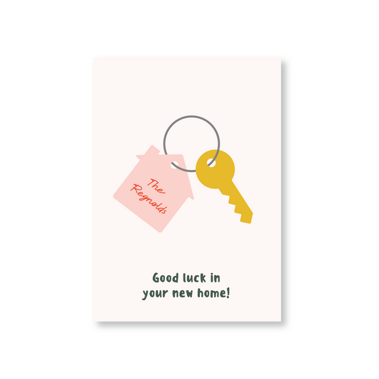New Home Card Featuring Keys & a Keyring (Personalised)